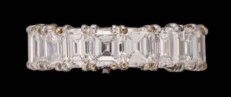 set with seventeen rectangular step-cut diamonds weighing approximately: 0.35 to 0.55 carat each; total diamond weight approximately: 8.00 carats.