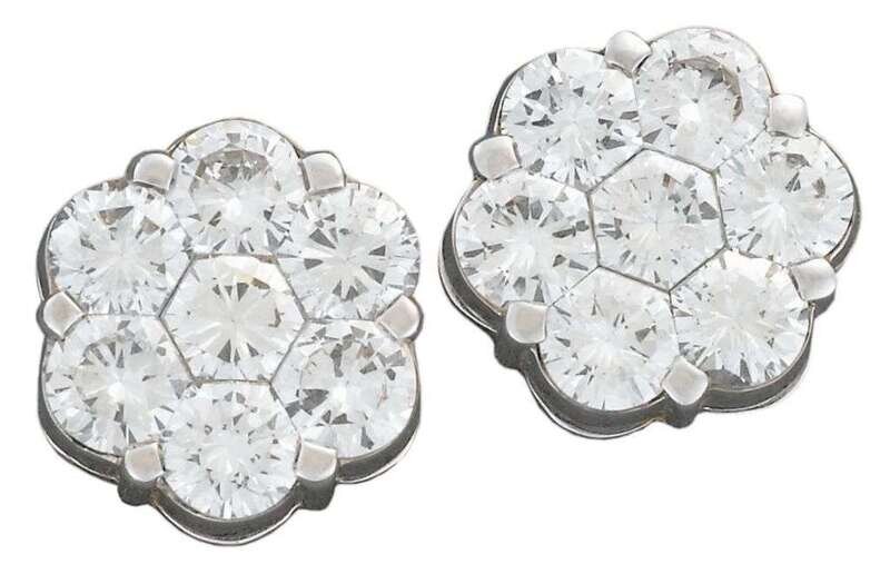 designed as a cluster with modified round brilliant-cut diamonds; total diamond weight approximately: 1.75 carats.