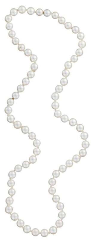 comprised of seventy round pearls measuring approximately: 5.50 to 6.00mm; invisible clasp, (can be reduced by 3 3/4 inches).