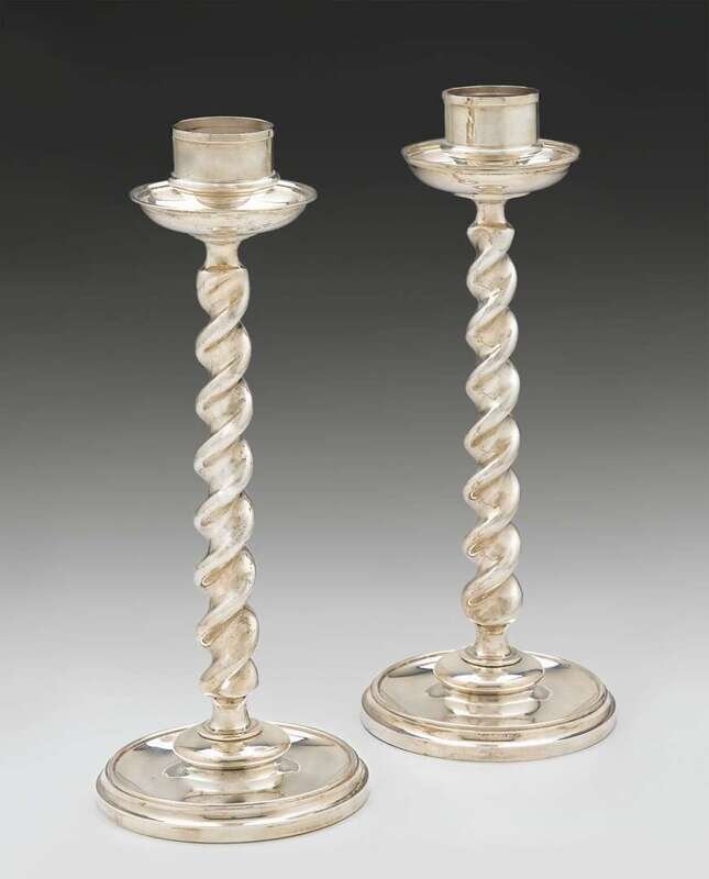 Pair of Italian silver columnar candlesticks buccellati, milan, 20th century