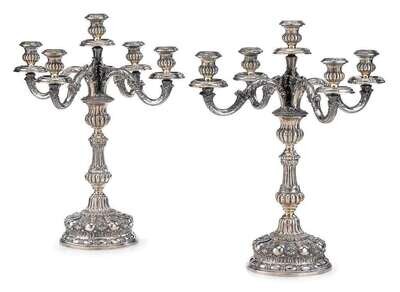 Pair of Italian silver four-branch five-light candelabra ventrella, rome, 20th century