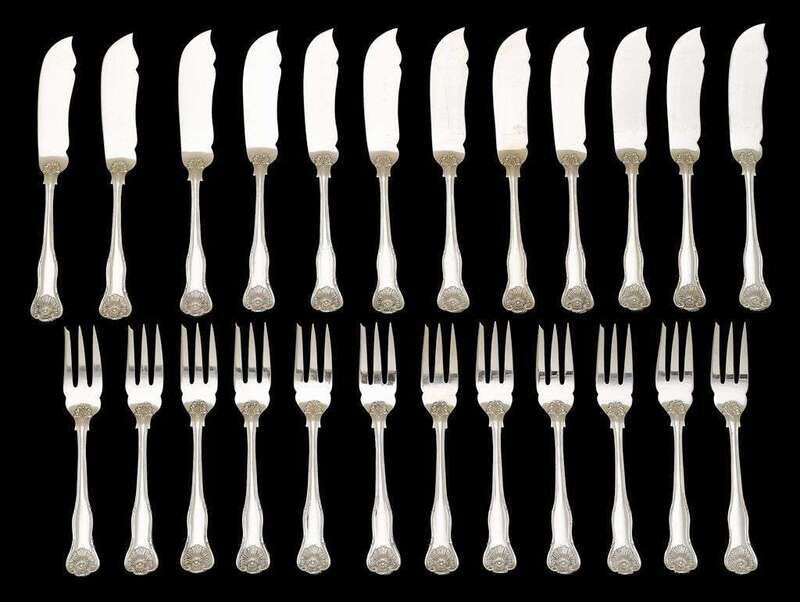 "King's Husk" pattern, comprising twelve each fish forks and knives. (24).