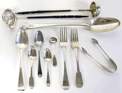 Collection of British silver flatware late 18th/early 19th century, mostly london