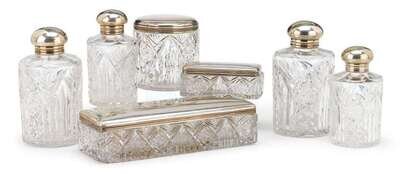 Russian silver and cut glass toiletry set nickolai vladimirov, st. petersburg, 1898-1917
