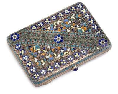 Russian cloisonné enamelled silver cigarette case moscow, 1908-26, probably d.p. nickitin