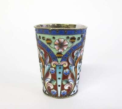 Russian cloisonné enamelled silver beaker moscow, 1908-26, cyrillic mark nz