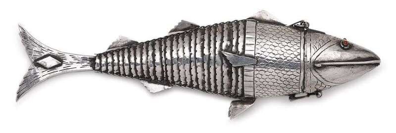 Continental silver fish-form spice box
