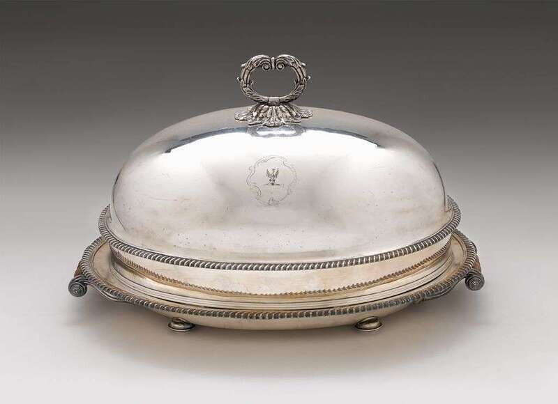 George III Sheffield silverplate roast dish with cover t. & j. creswick, sheffield, circa 1811
