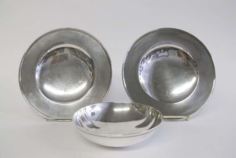 Typical form raised on circular foot; together with a Tiffany & Co. sterling silver shallow bowl, 1947-56. (3).