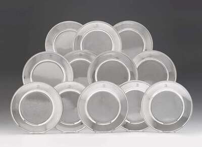 Twelve sterling silver dinner plates tiffany & co., new york, ny, circa 1923