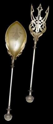Sterling silver and vermeil figural salad service attributed to george sharp (active circa 1850-1874) for tiffany & co., new york, n