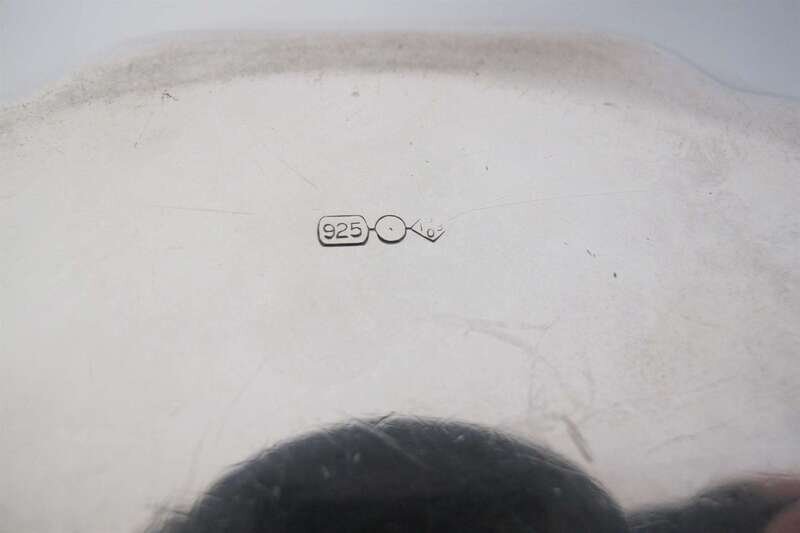 Shaped circular form with lobed body, removable handle, monogrammed.