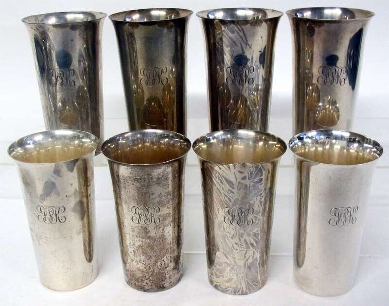 Typical form, monogrammed "K"; together with eight tumblers by M. Fred Hirsch Co., Jersey City, NY, mid 20th century, with flared rim, monogrammed to body. (14).
