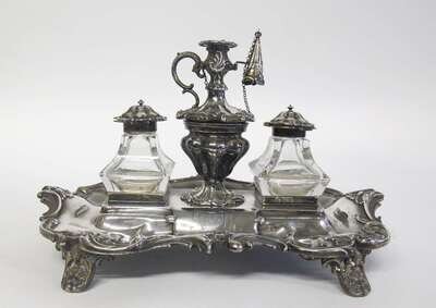 Victorian silver inkstand henry wilkinson & co, sheffield, 1846-47