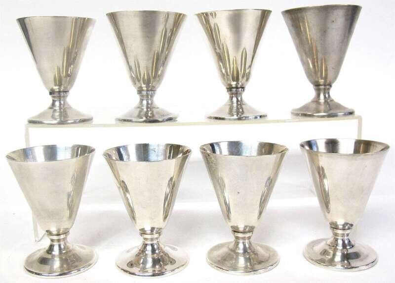 Eight sterling silver wine glasses m. fred hirsch co., jersey city, nj, 1920-1945