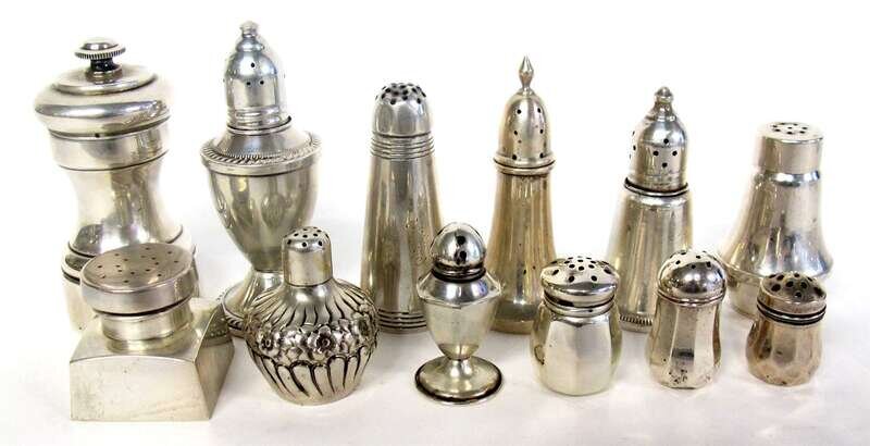 Collection of sterling silver salt and pepper shakers various makers, 20th century