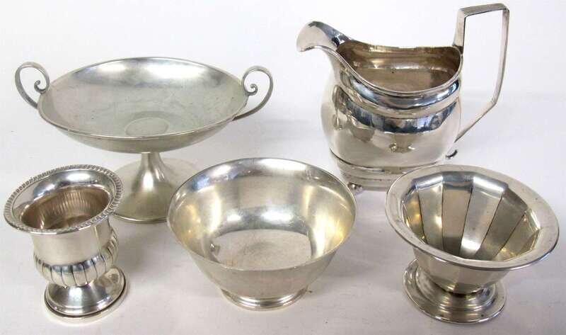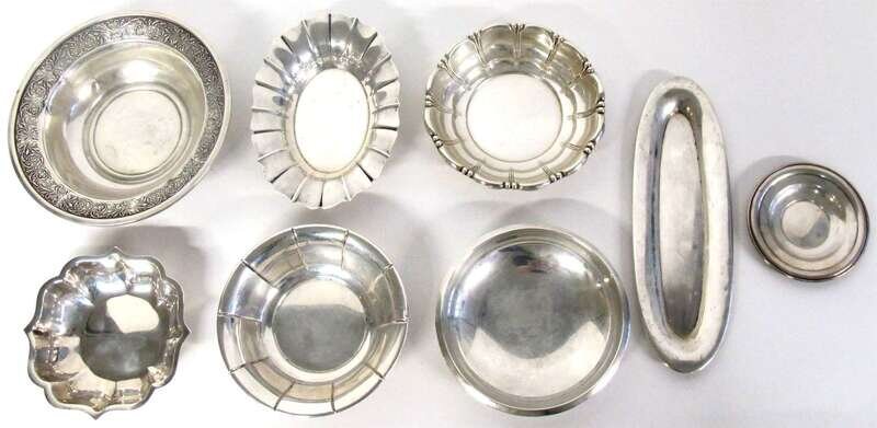 Various forms and sizes, makers include Tiffany & Co., Revere Silversmiths, Reed & Barton, Wallace, Watson Co., Baker-Manchester Co., some monogrammed. (13).