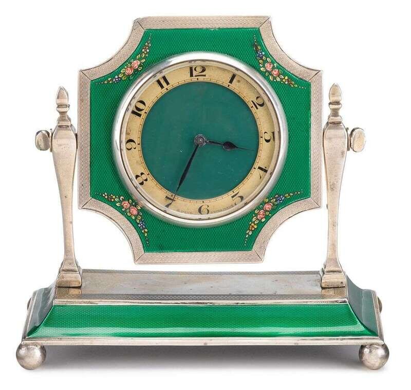 George V Art Deco guilloche enamelled silver desk clock arthur barnett & co., ltd., birmingham, 1926-27