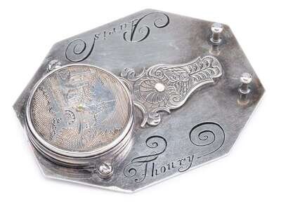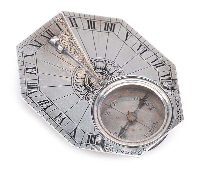 French silver horizontal pocket sundial and compass signed thoury, a paris, late 17th/early 18th century