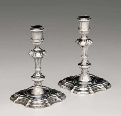 Pair of George II silver candlesticks william gould, london, 1744-45