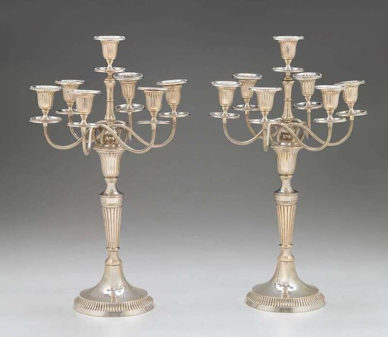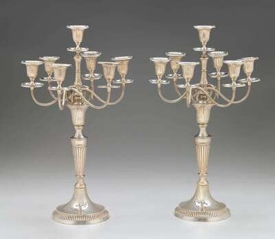 Pair of German silver six-branch seven-light candelabra korner and proll, berlin, retailed by gbr. friedlander