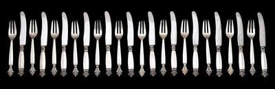 "Royal Danish" pattern, comprising twelve each dessert forks and knives. (24).
