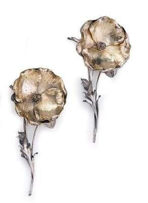 Realistically modelled in the form of a poppy flower, each bud pierced for salt or pepper, with gilt-washed petals. (2).