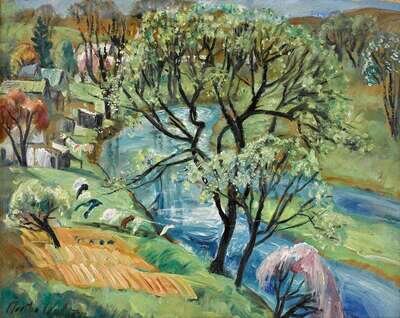 MARTHA WALTER (AMERICAN 1875-1976) "HOUSES BY THE STREAM, BETHAYRES"