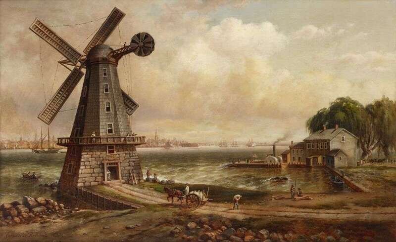 GRANVILLE PERKINS (AMERICAN 1830-1895) "ISAAC EDGE'S WINDMILL, JERSEY CITY, 1815"