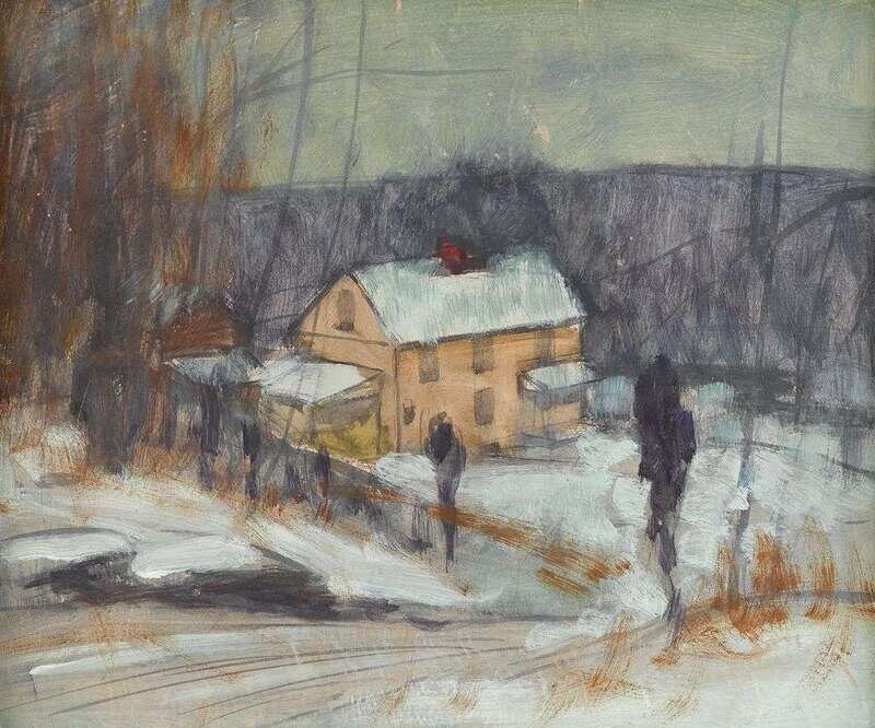 GEORGE WILLIAM SOTTER (AMERICAN 1879-1953) BUCKS COUNTY HOUSE IN WINTER