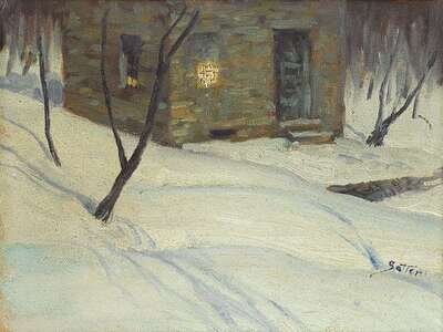 GEORGE WILLIAM SOTTER (AMERICAN 1879-1953) STONE HOUSE IN WINTER