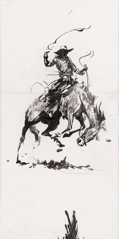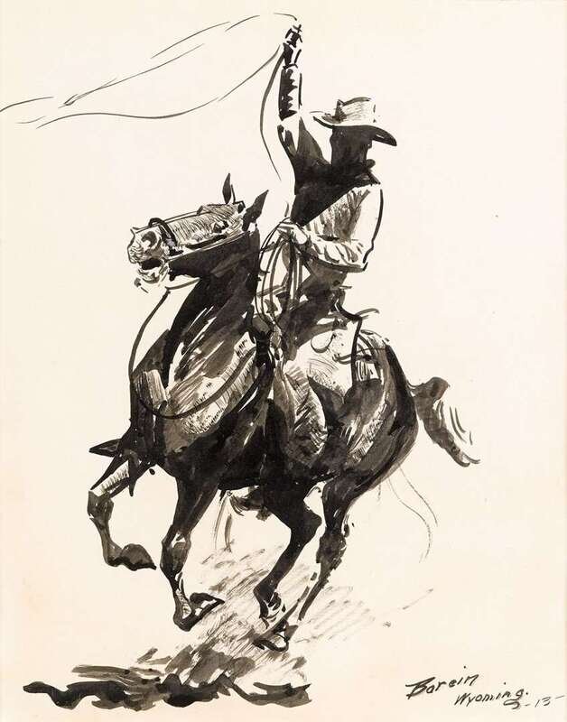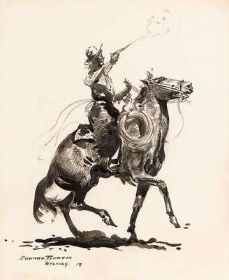 EDWARD BOREIN (AMERICAN 1872-1945) COWBOY ON HORSEBACK WITH LASSO