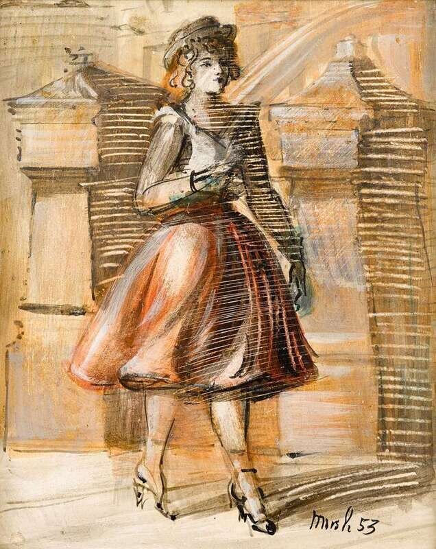 REGINALD MARSH (AMERICAN 1898-1954) "GIRL WALKING ON A NEW YORK STREET"