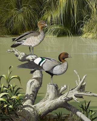 WILLIAM T. COOPER (AUSTRALIAN B. 1934) "MANED DUCKS OR AUSTRALIAN WOOD DUCKS"