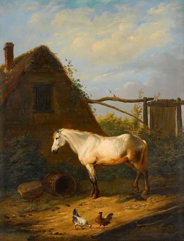 EUGÈNE VERBOECKHOVEN (BELGIAN 1799-1881) HORSE AND CHICKENS