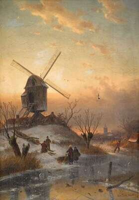 CHARLES HENRI JOSEPH LEICKERT (BELGIAN 1818-1907) FIGURES IN A WINTER LANDSCAPE AT TWILIGHT