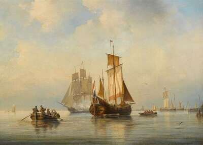 ARY PLEYSSIER (DUTCH 1809-1879) SHIPPING IN A CALM