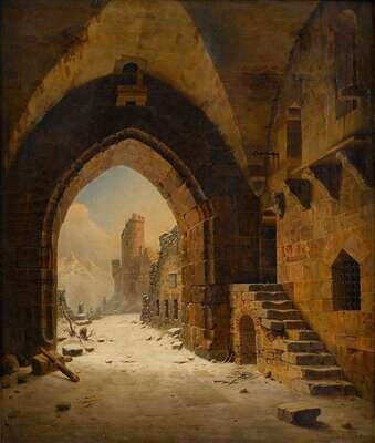 AFTER CARL GEORG ADOLPH HASENPFLUG (GERMAN 1802-1858) ENTRANCE TO TOWN IN SNOW