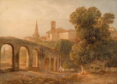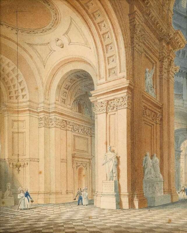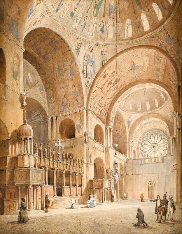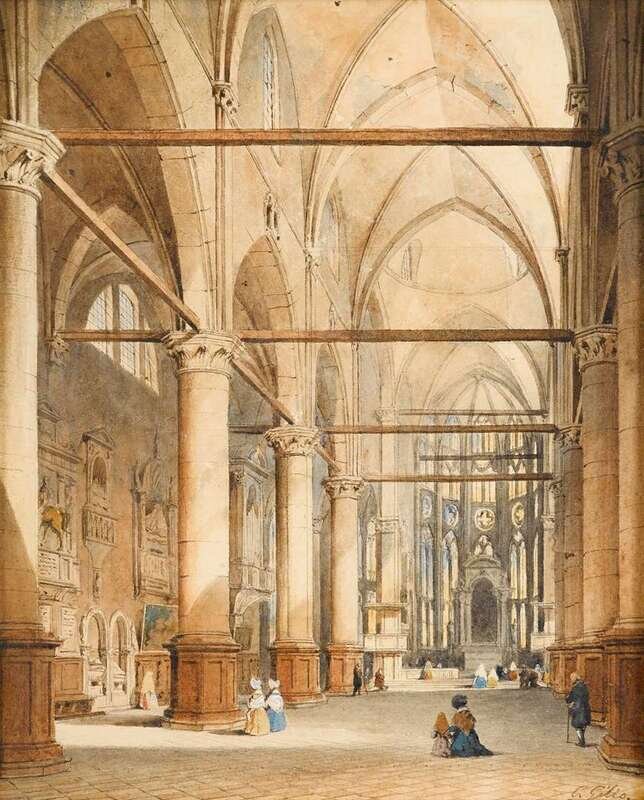 CARLO GILIOR. MULLER (ITALIAN D.1841)(GERMAN 19TH CENTURY) CATHEDRAL INTERIORSFIGURES OUTSIDE AN ITALIAN TOWN
