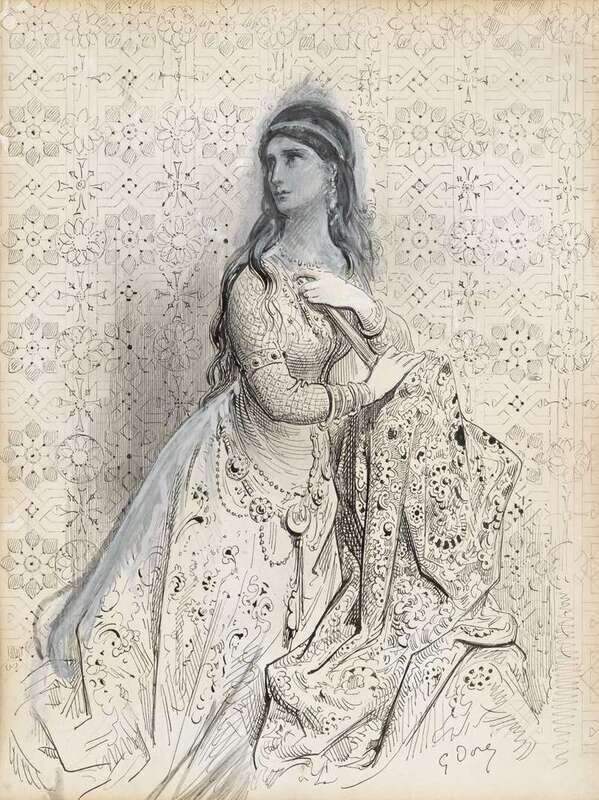 GUSTAVE DORÉ (FRENCH 1832-1883) PORTRAIT OF AN ELEGANT LADY HOLD FAN