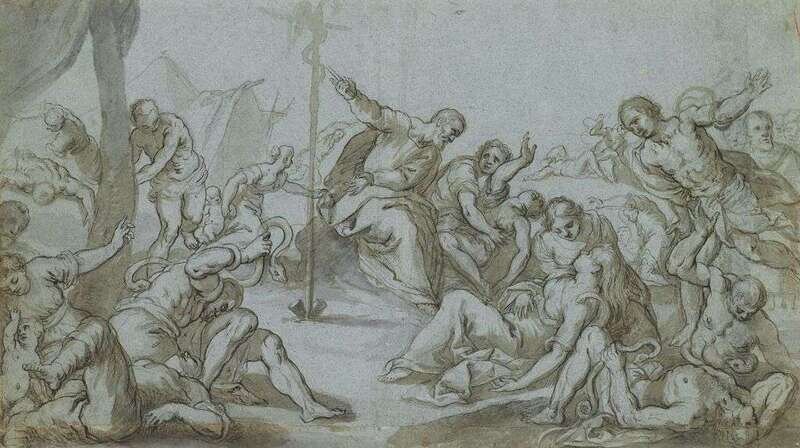 ATTRIBUTED TO JACOPO PALMA IL GIOVANE (ITALIAN C.1548-1628) MOSES AND THE BRAZEN SERPENT