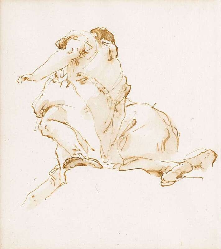 ATTRIBUTED TO GIOVANNI BATTISTA TIEPOLO (ITALIAN 1696-1770) TWO FIGURES SEEN DA SOTTO IN SU