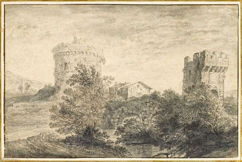 ATTRIBUTED TO JAN FRANS VAN BLOEMEN (FLEMISH 1662-1749) ITALIANATE LANDSCAPE WITH BRIDGE