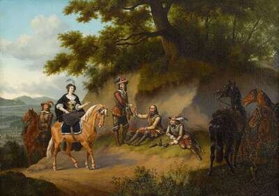 MANNER OF BAREND GAEL (DUTCH 1620-C.1687) ELEGENT COMPANY ON A HILLSIDE