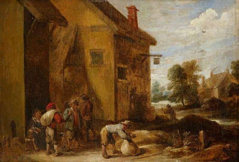 DAVID TENIERS THE YOUNGER (FLEMISH 1610-1690) PEASANTS OUTSIDE AN INN