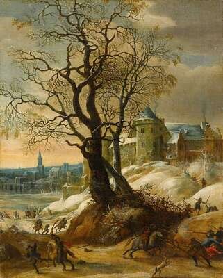 CIRCLE OF PIETER SNAYERS (FLEMISH 1592-1667) THE SACKING OF A VILLAGE IN WINTER