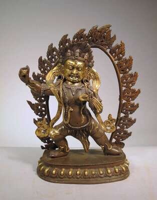 The standing demonic figure supported on lotus base with inset flaming mandorla.
