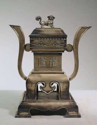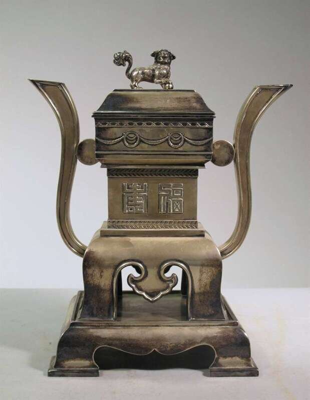 Chinese white metal covered censer on stand early 20th century