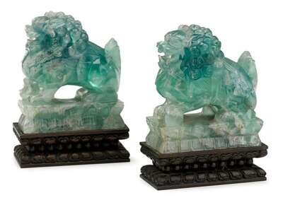Pair of Chinese carved fluorite fu lions qing dynasty