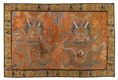 Chinese embroidered dragon robe fragment 18th century